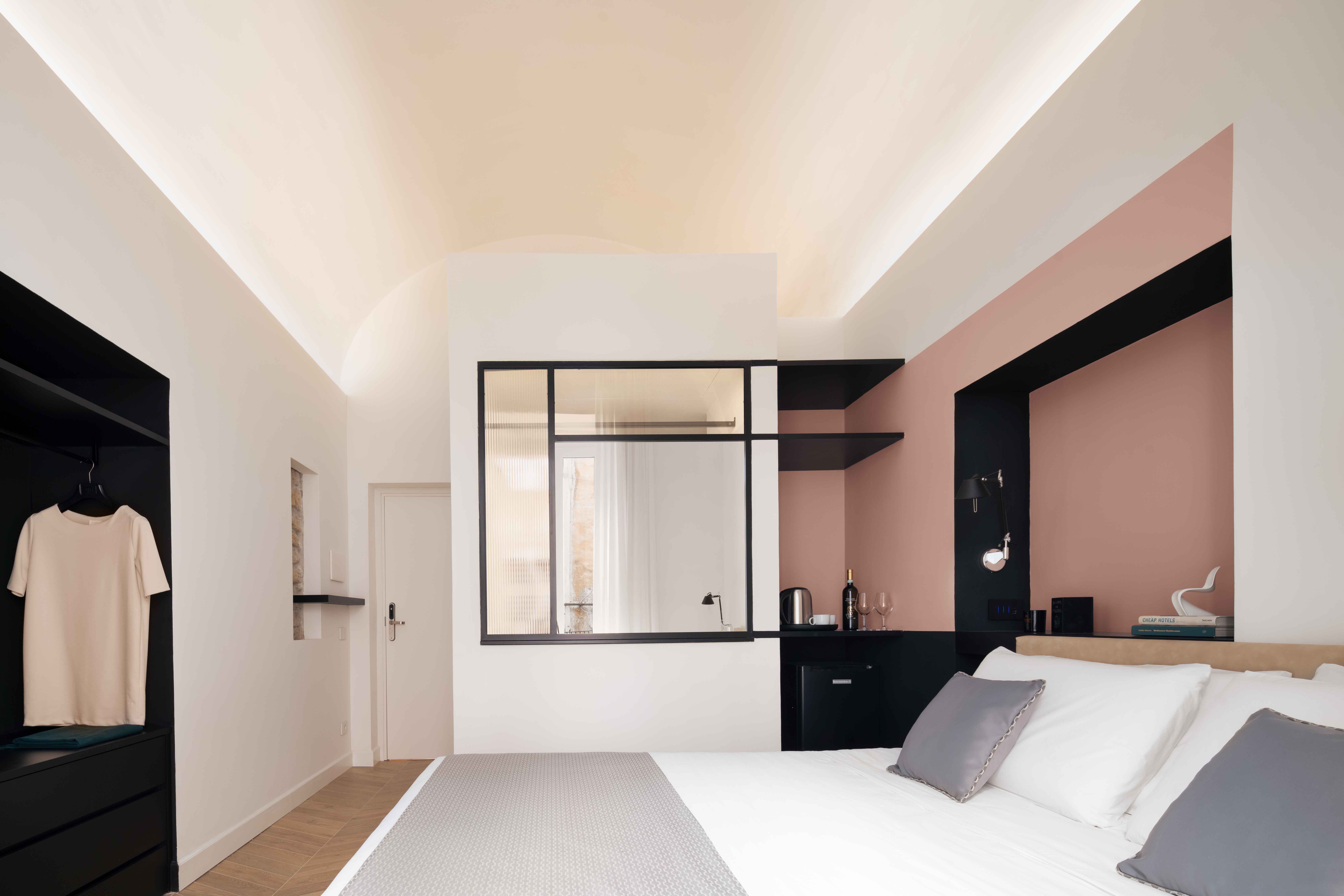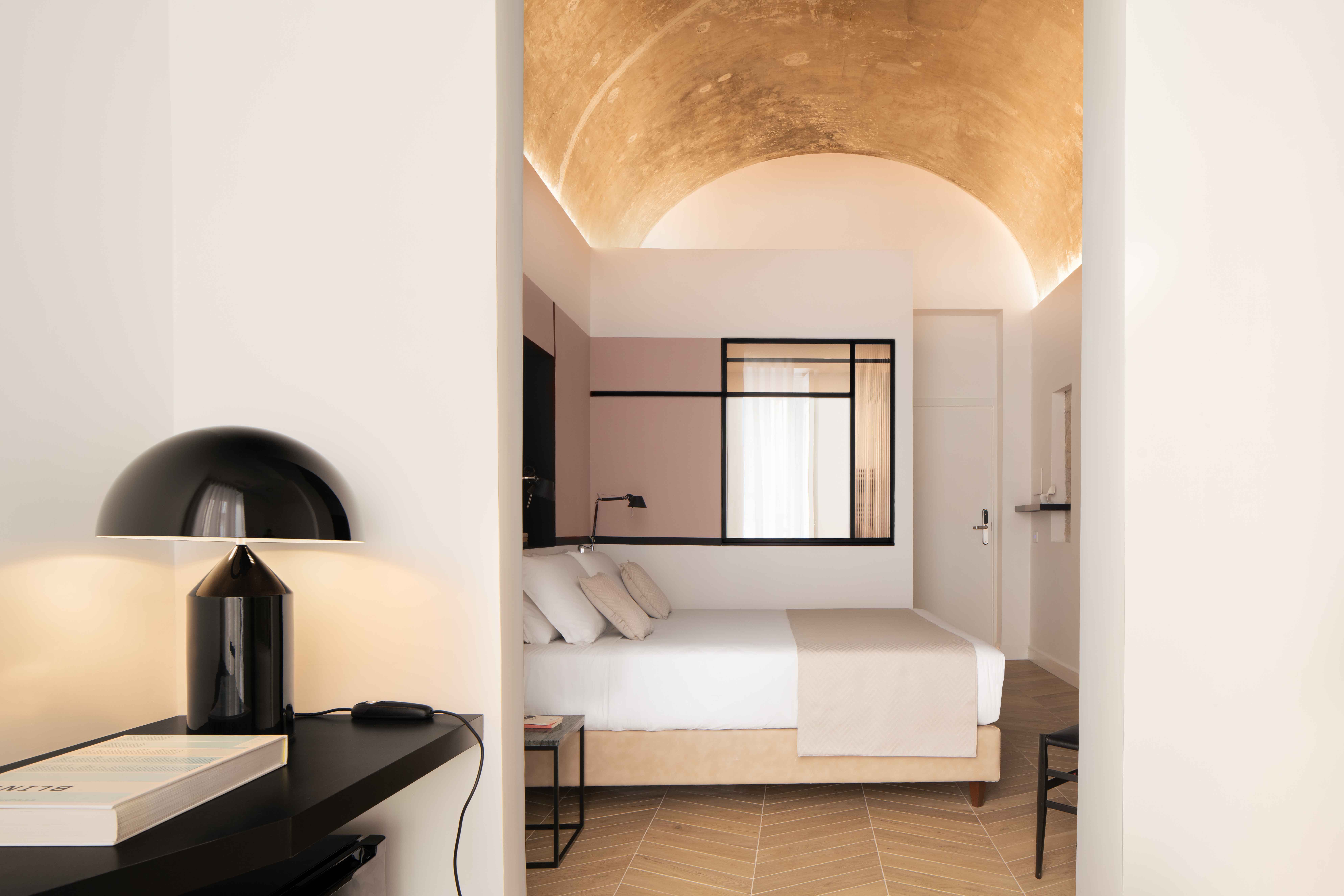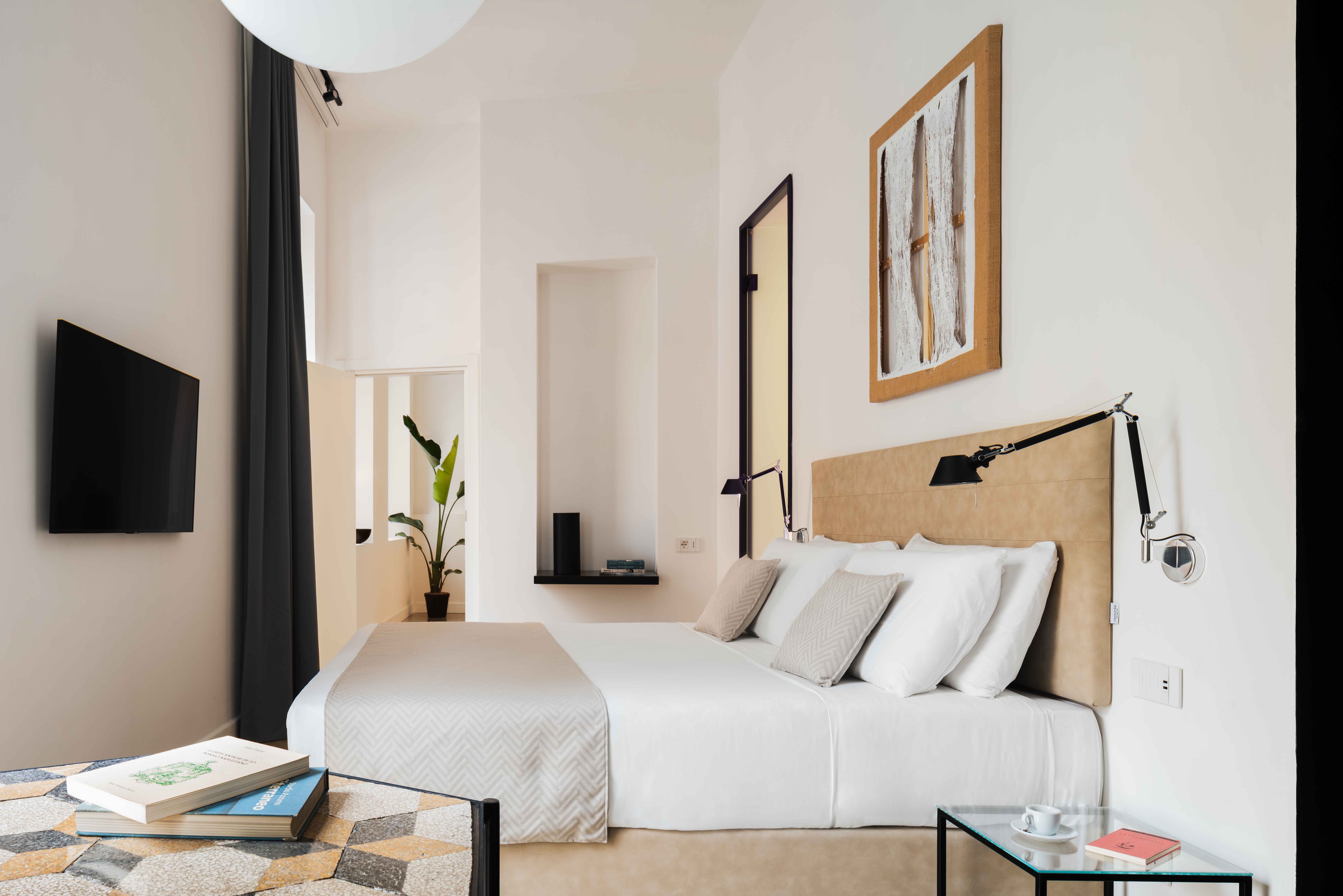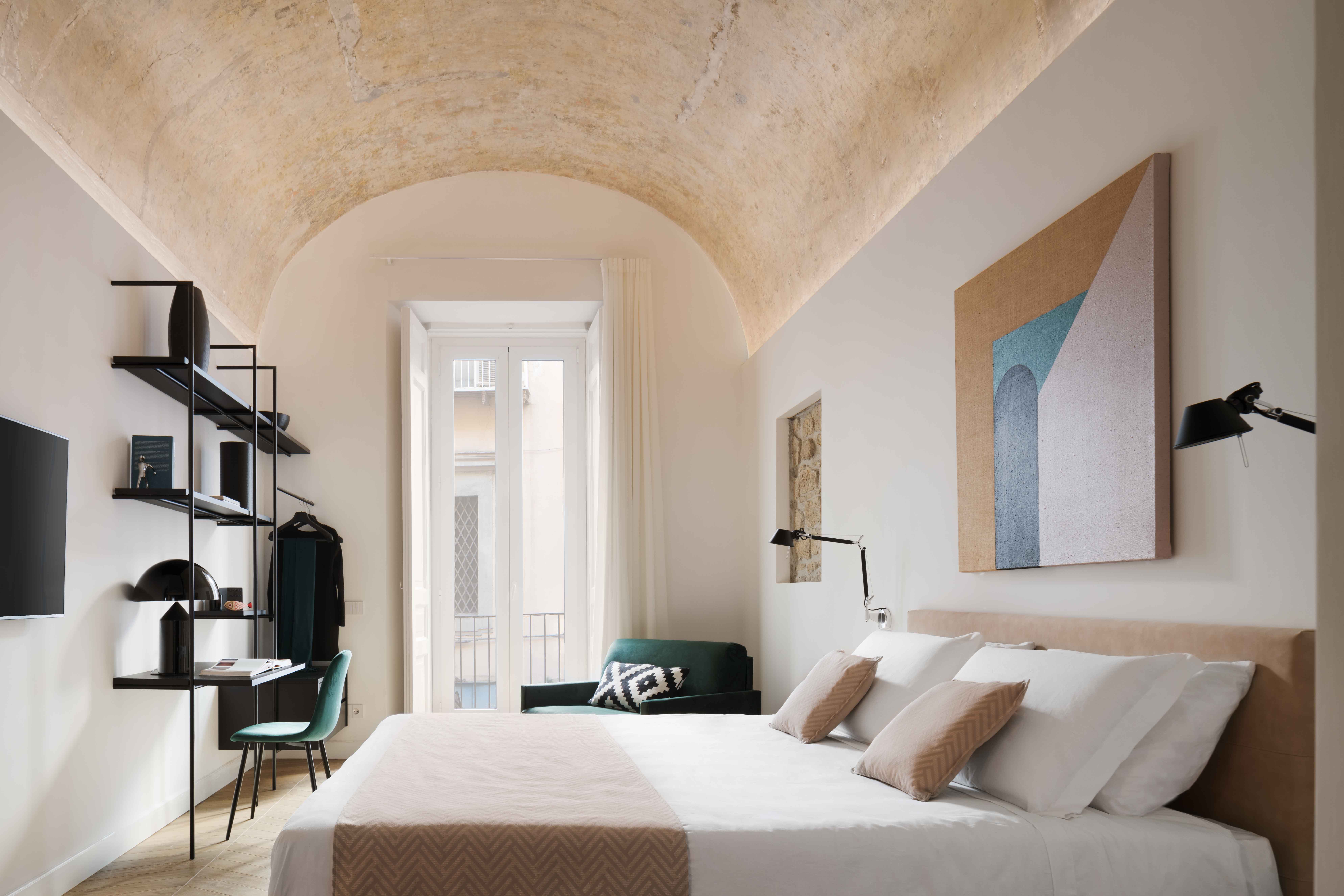 La nostra elegante camera Superior dalle curve equilibrate ed armoniose offre una vista sulla tranquilla e caratteristica stradina di vico Carceri San Felice. In aggiunta al letto matrimoniale King size, vi è anche la disponibilità di un comodissimo letto singolo per accogliere un terzo ospite.