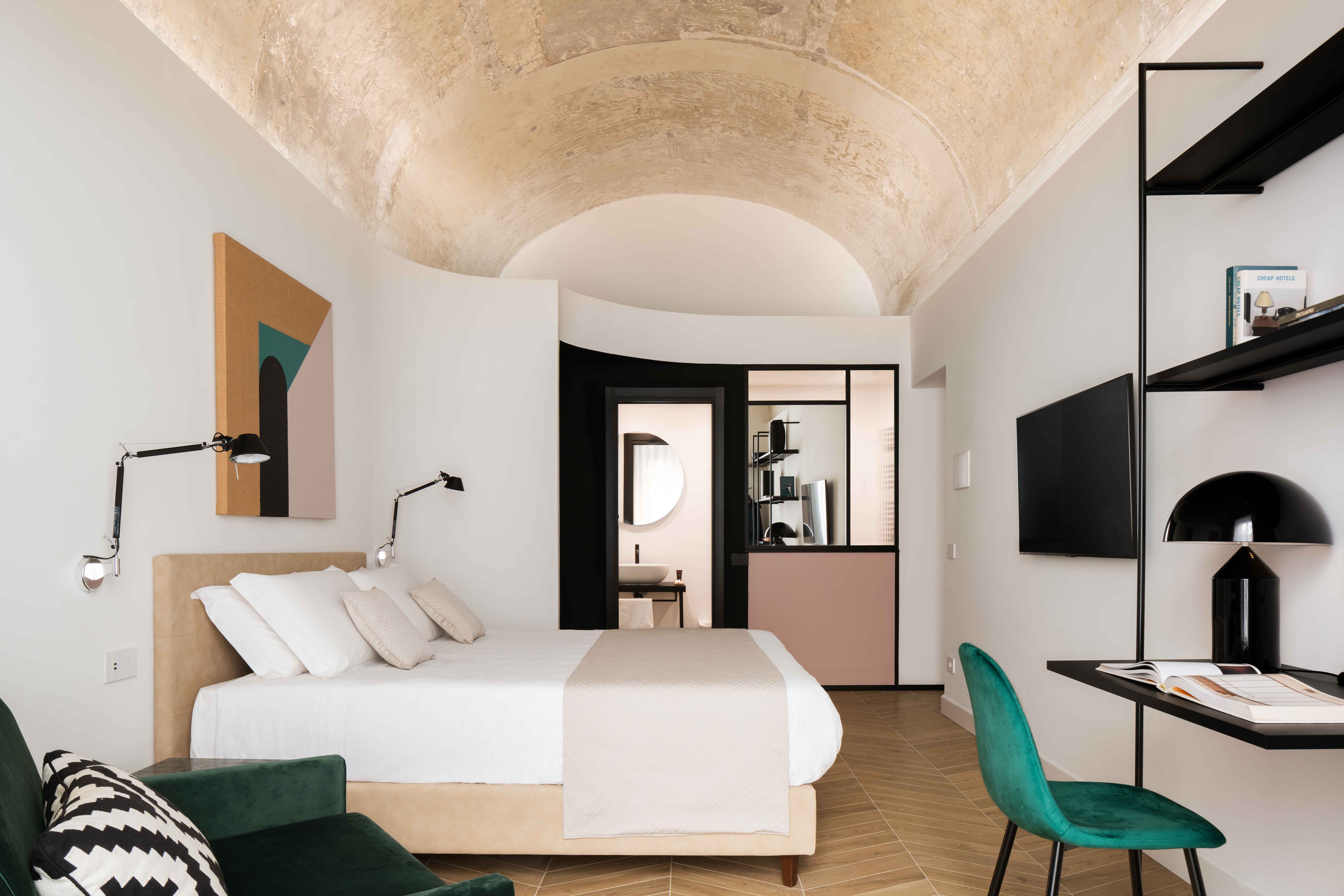La nostra elegante camera Deluxe, decorata con una palette di colori naturali e impreziosita da mobili artigianali, fonde con eleganza un’antica volta del settecento al design contemporaneo. Dispone di un’ampia poltrona letto per accogliere un terzo ospite con il massimo comfort.